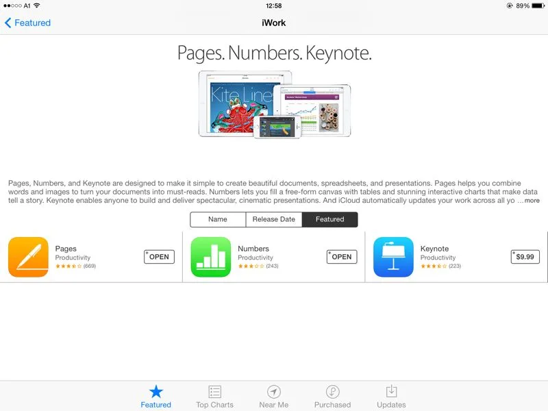 Pages, Numbers and Keynote appear to be free for iOS devices. The Mac versions are still $20 each.