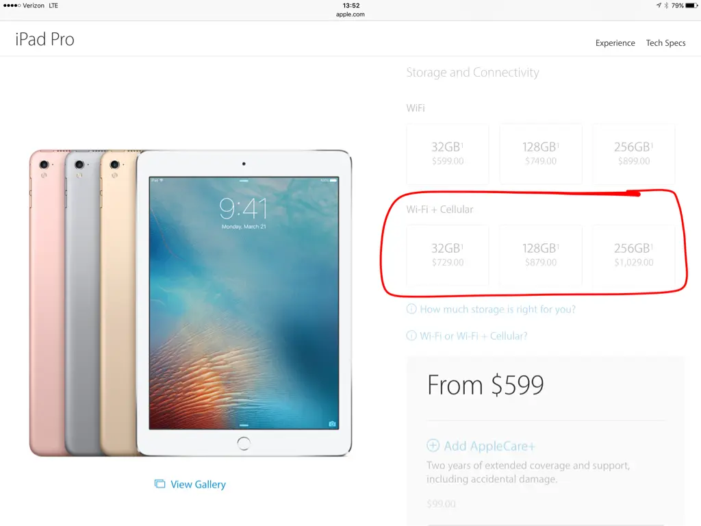 - Apple A9X processor - 3D FinFET process - 12 Cores - M9 coprocessor, great for pro apps, multi-tasking, videos and gaming - supports always on "Hey Siri"