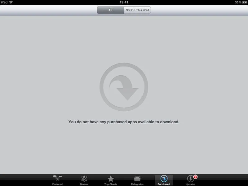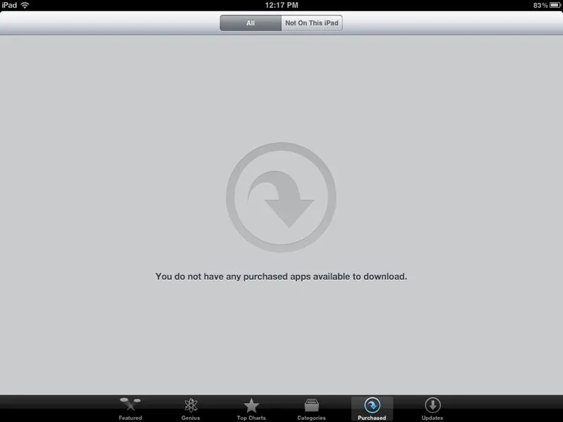 I was just in the App Store and looked at my "Purchased" section. It was totally blank! Not one app that I purchased was listed in there (See attachment). What is the problem? There was hundreds of apps in there yesterday. Can anyone tell me what's going on?