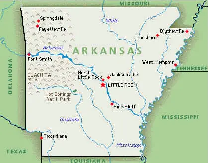 The geography of the state has impacted on the emergence of these various genres, e.g. mountain/string music in the Ozark Mountains and the blues heritage along the Mississippi Delta - back around 1990, my son & I flew into Memphis, TN, picked up a rental car and headed into Mississippi to explore the Delta Blues (an area of interest to us); we drove down to Vicksburg and back up to Clarksdale (w/ several one-night motel stays) - crossed the river to visit Helena, AR and the Delta Cultural Center - back in 1941, the King Biscuit Time was first broadcasted w/ Sonny Boy Williamson II on harmonica & Robert Jr Lockwood on guitar; so, just one aspect of Arkansas' musical diversity; we were on our own but now a Mississippi Blues Trail w/ multiple road plaques (and a map) greatly aids this type of musical exploration.
