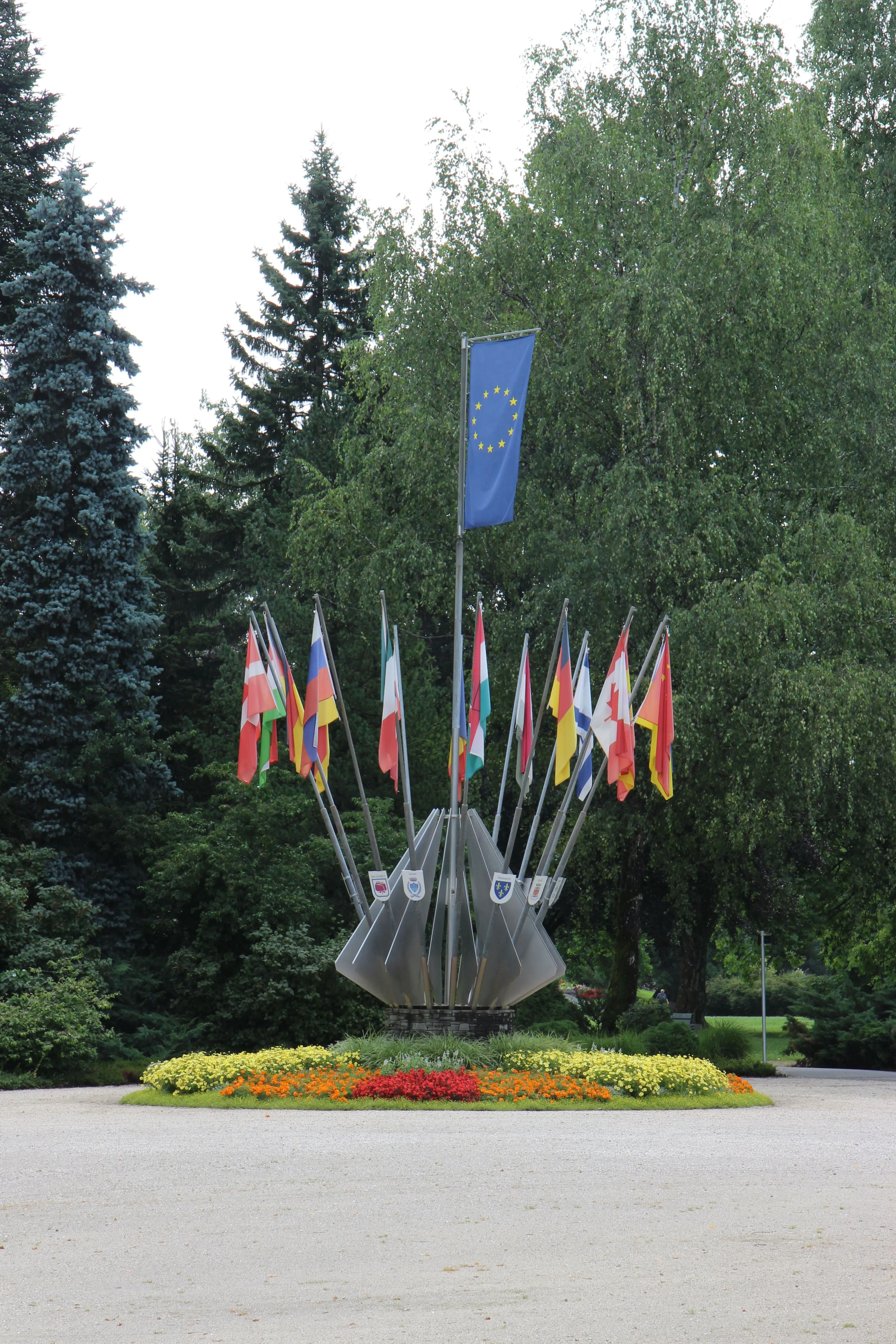 The name "Europapark" should show Klagenfurt's cosmopolitanism. The flags are from the city's twinned towns. Here's the list:I noticed that that flag display included a Canadian flag. The flower gardens are wonderful, even the one with the fallen tree.