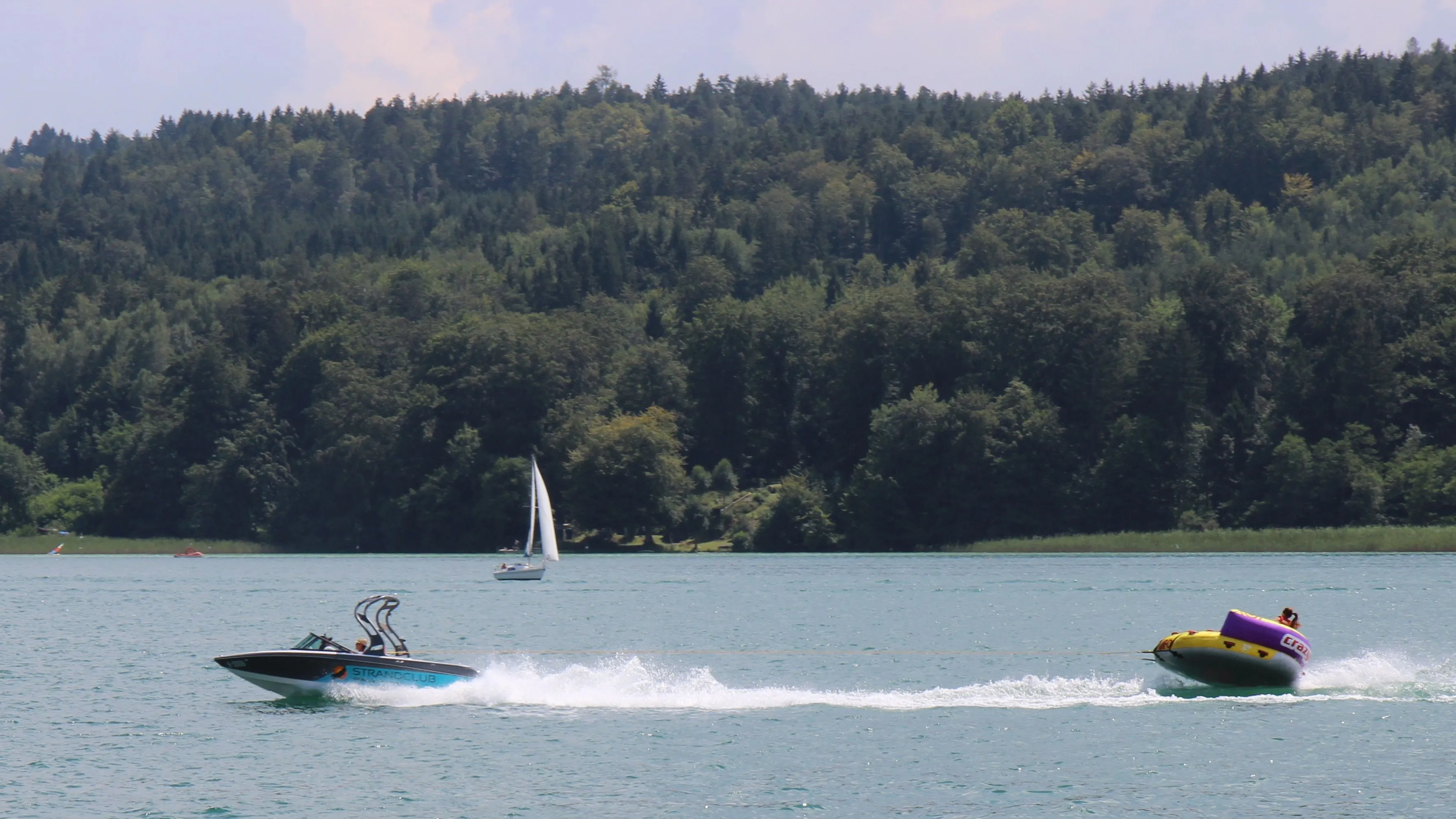 Waterskiing is also possible. In Pörtschach, where I had my hotel room, there's a night water ski show every Monday at 9 PM in summer. It also took place when I was there, although it was raining.