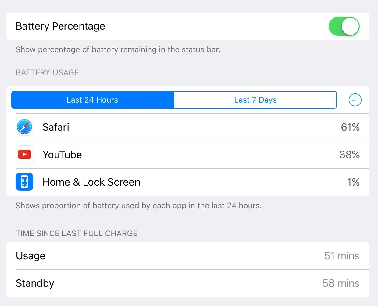 Suddenly the usage in settings/battery is always the same as time since last full charge. This first happened 2 days ago without any notification.