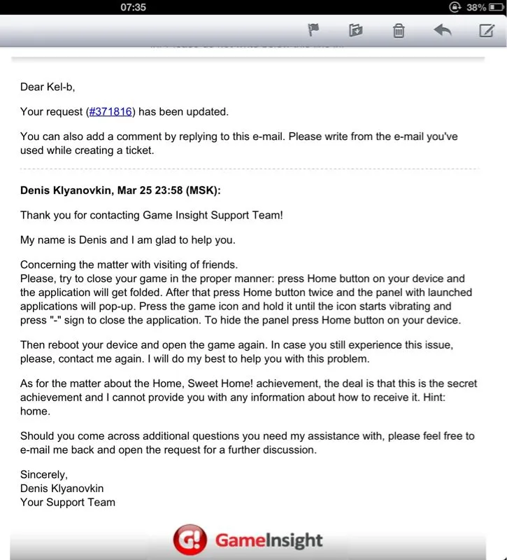 I got my reply from support about friends... BUT look they also replied about the home sweet home task.