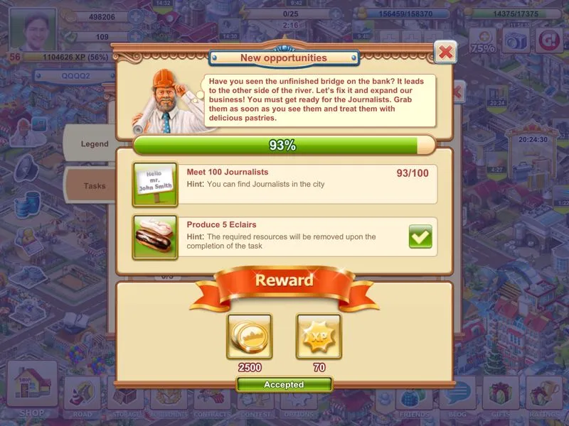 I looked up wiki and they have "5 eclairs" after "meet 100" and "plant 10 trees on the hill" somewhere in the beginning, which I thought was a part of the hydro quest, no?