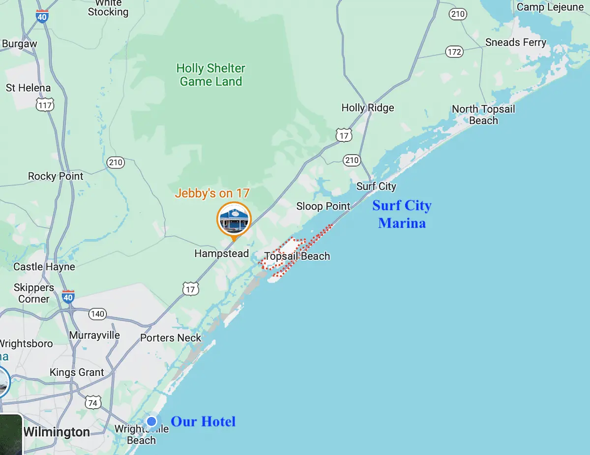 Camp Lejeune. The northeastern edge of the island is the