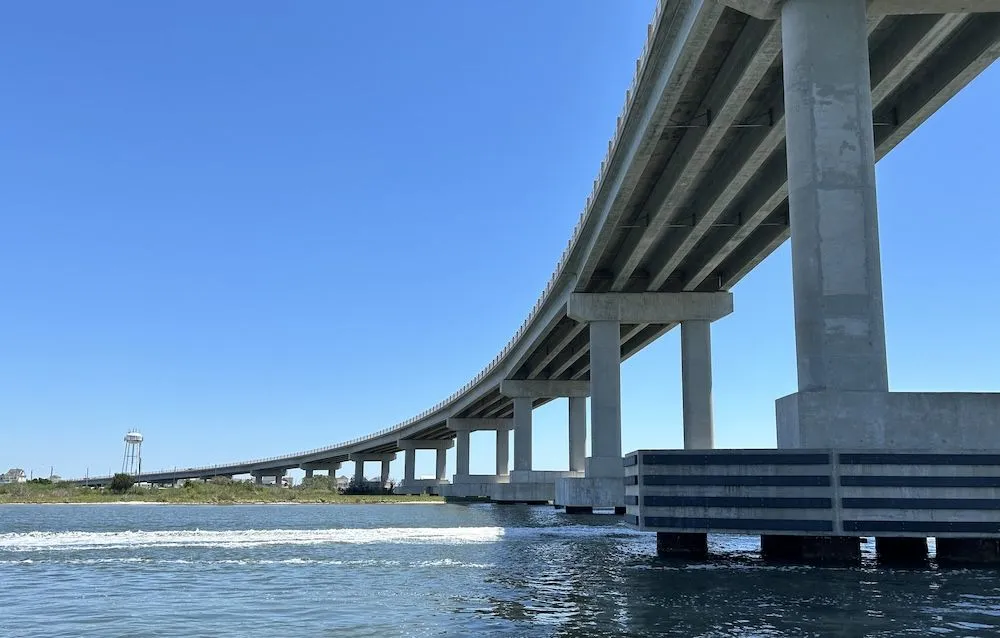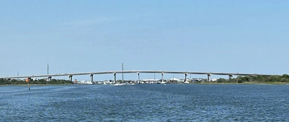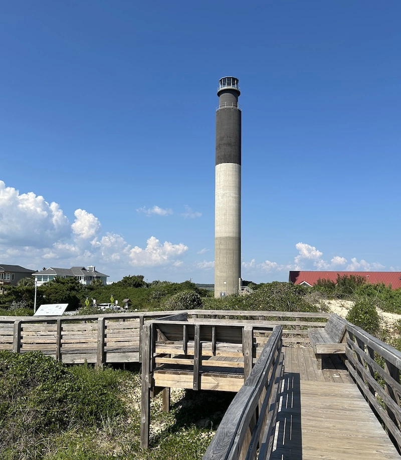sea turtles and is known for its beautiful beaches. There are only two ways on and off the island: a high-rise bridge in Surf City and a high-rise bridge in