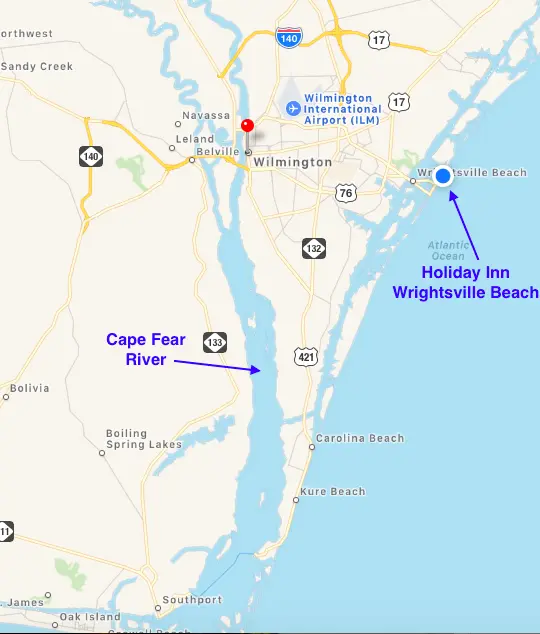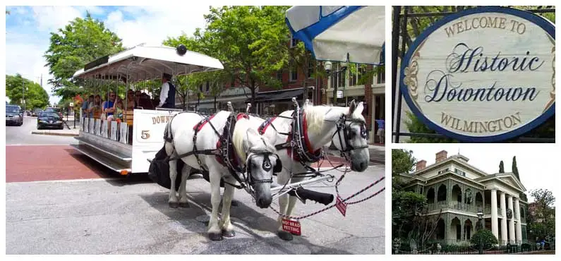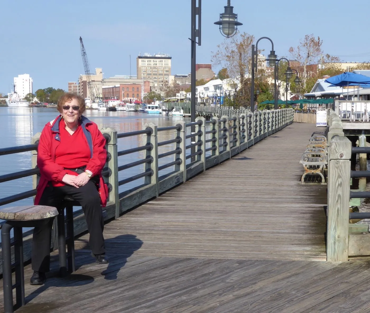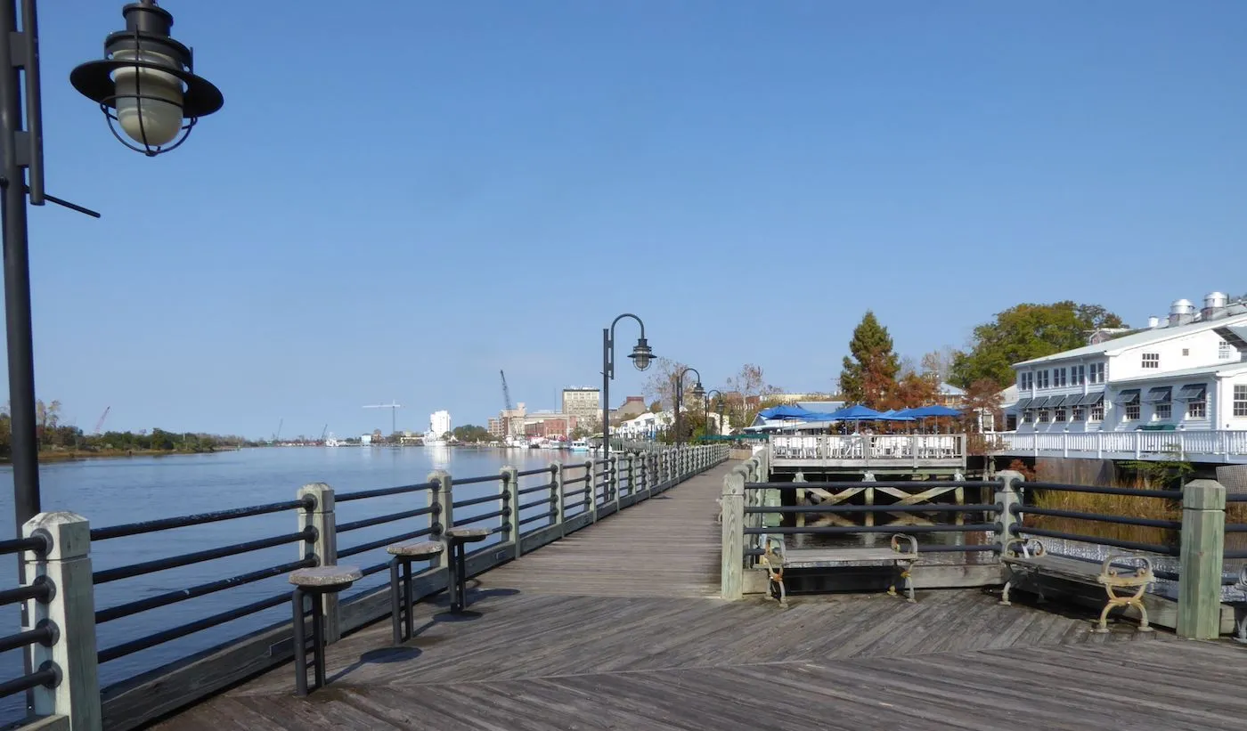 On Tuesday morning, the skies cleared and the sun came out - should be a good day to tour - first two images below from our hotel room. Wilmington, NC is a port city of historic and current importance - the city is located about 30 miles up the mouth of the Cape Fear River (see map). The early history of the town is quoted below (my synopsis from the link given). Wilmington's Cape Fear Waterfront is beautiful (next two images); also from the link "Its historic downtown has a one-mile-long Riverwalk, originally developed as a tourist attraction, and in 2014 Wilmington's riverfront was named the "Best American Riverfront" by USA Today." - actually the Riverwalk (basically, a Cape Fear River boardwalk) is being extended and portions are under construction - eventual length will be about 2 miles (see the last two images, of just a portion of the walkway w/ Susan relaxing).
