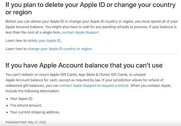 That was nearly 10 years ago. Now, as my ipad is no longer supported by Apple and the cash is intact and unused, how do i get my money returned ? I cannot give it to another family member- the instructions in the app store are misleading-only inviting the purchaise of a gift card rather that tranfering the cash already held.