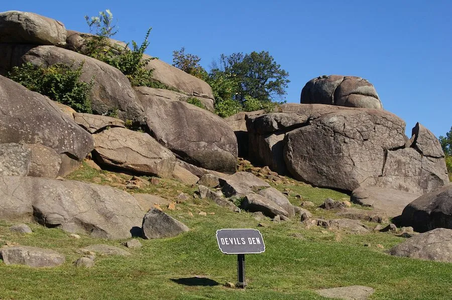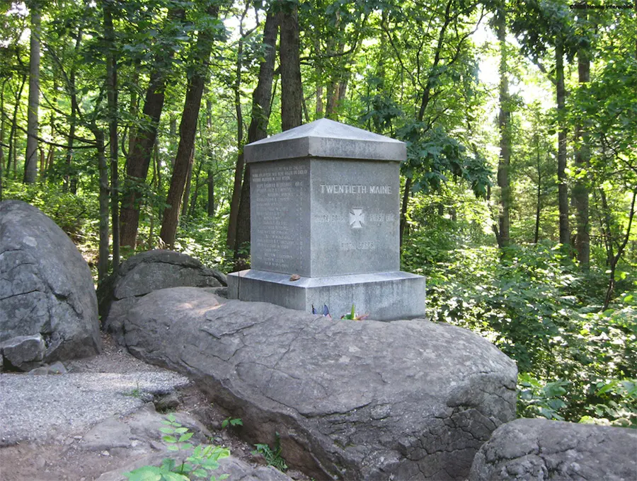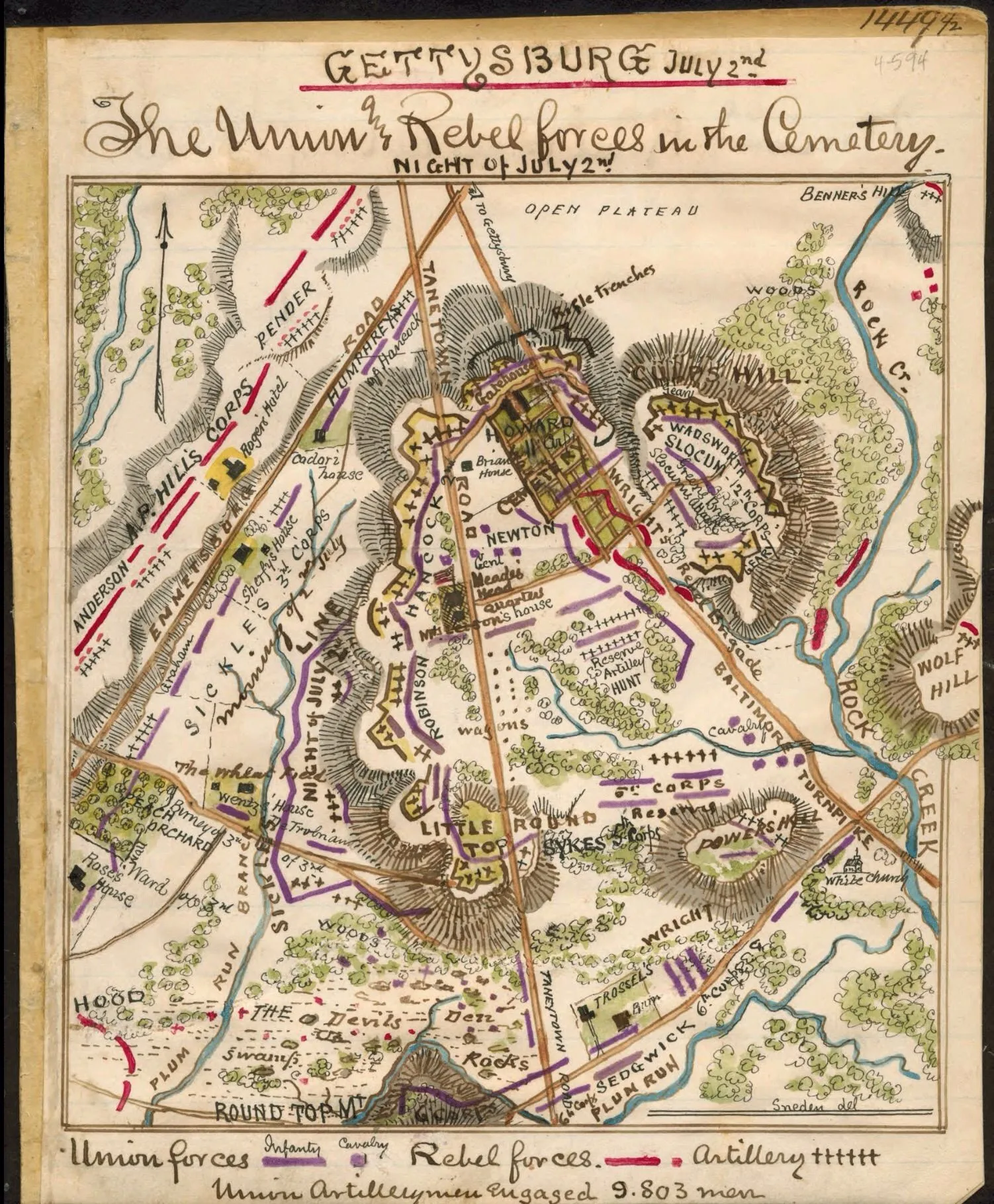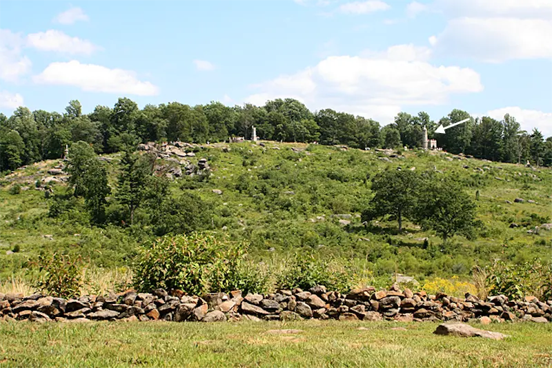 Little Round Top - the blue arrows indicate the final assault of the rebels.