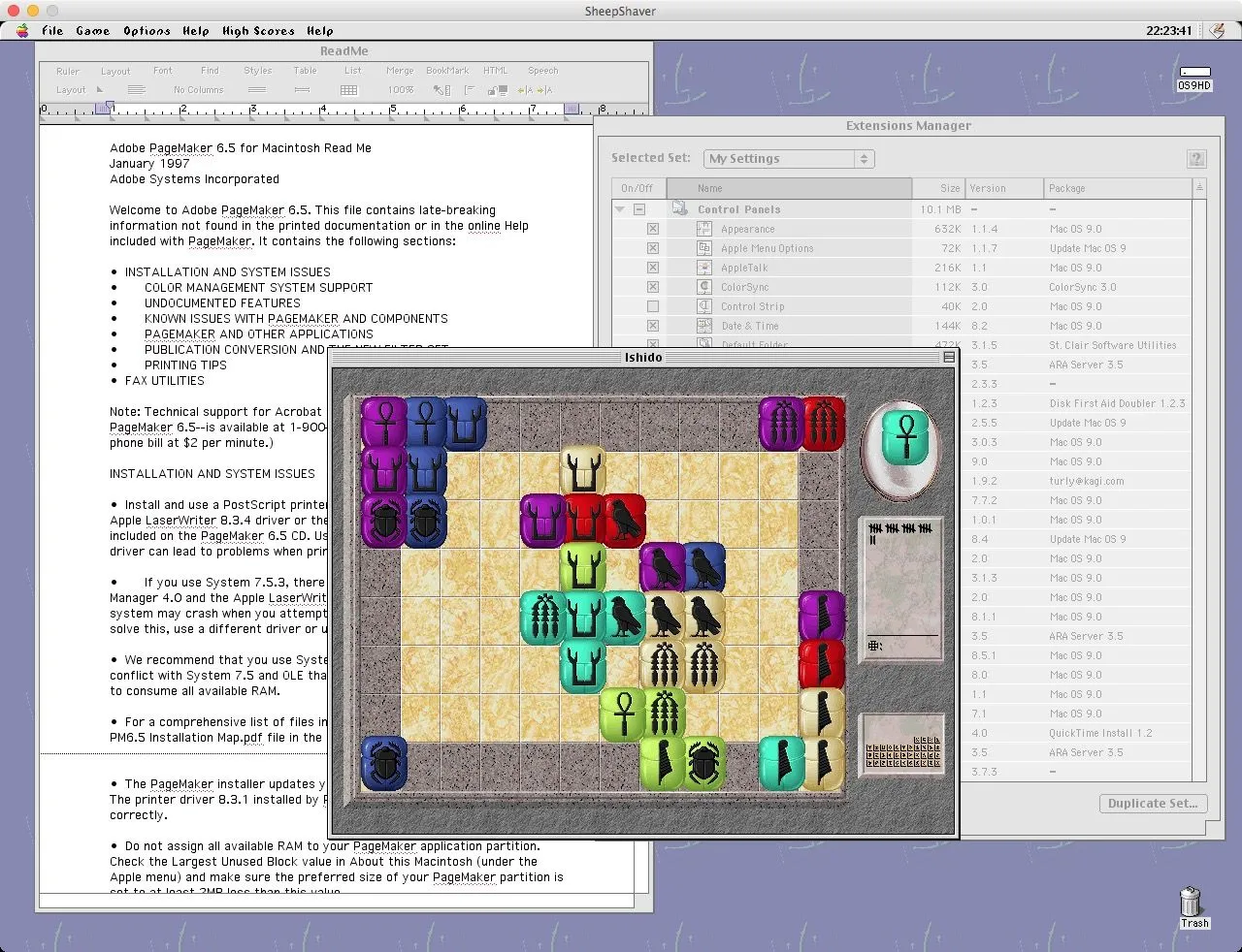 Oh, my, look at all the memories! Ishido, the PageMaker readme in WordPerfect, and Extensions Manager.