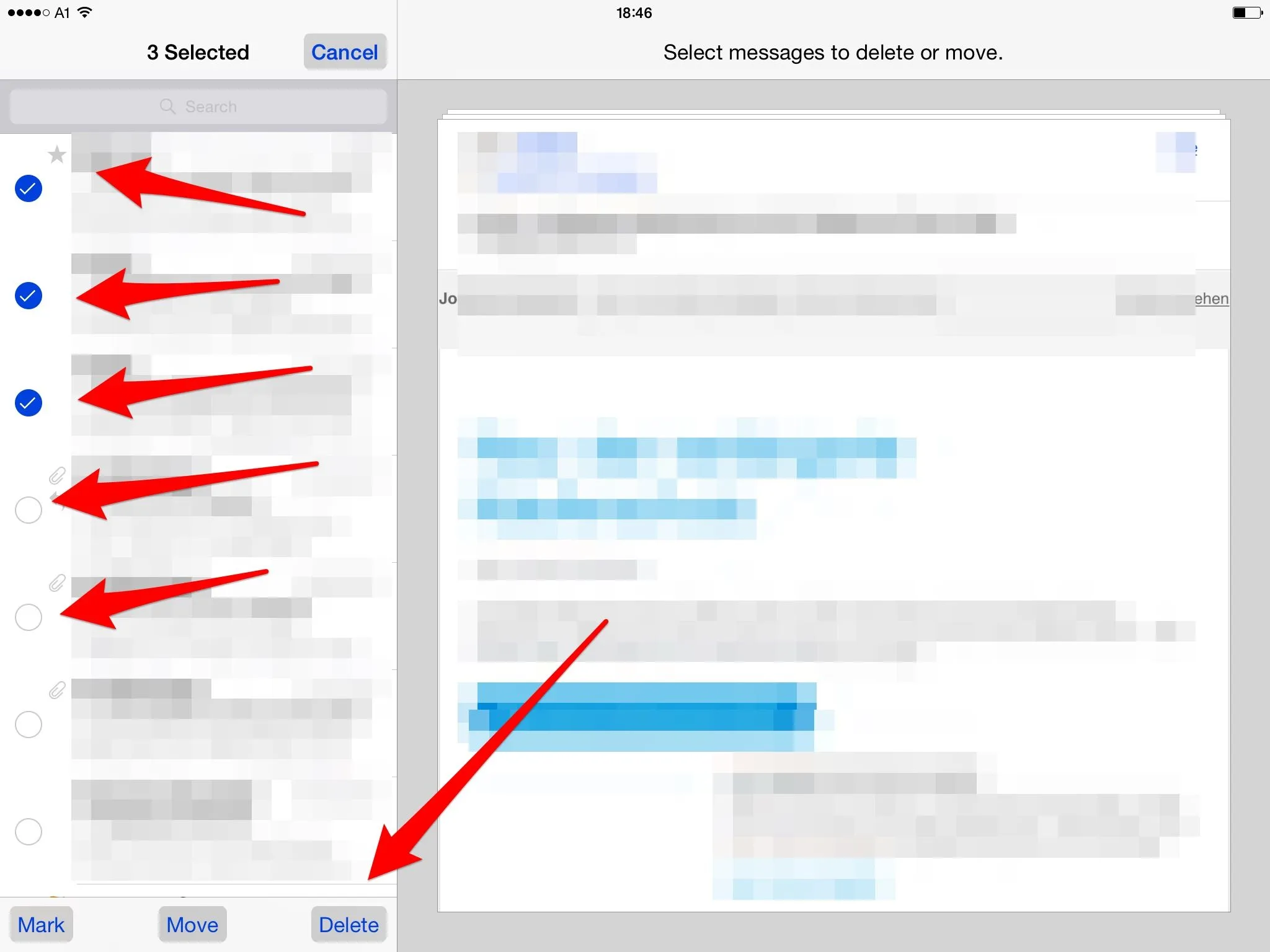 When you see the folders where you can move them to, select Trash to delete them from the Inbox.