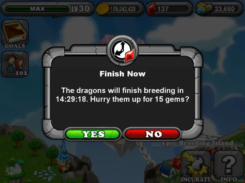skaterboy69 said:Do I have to have my breeding cave with it too I used snow left and love right I was in too much of a hurry saw 15 gems after I sped it up and realized no dragon has 15hrs.