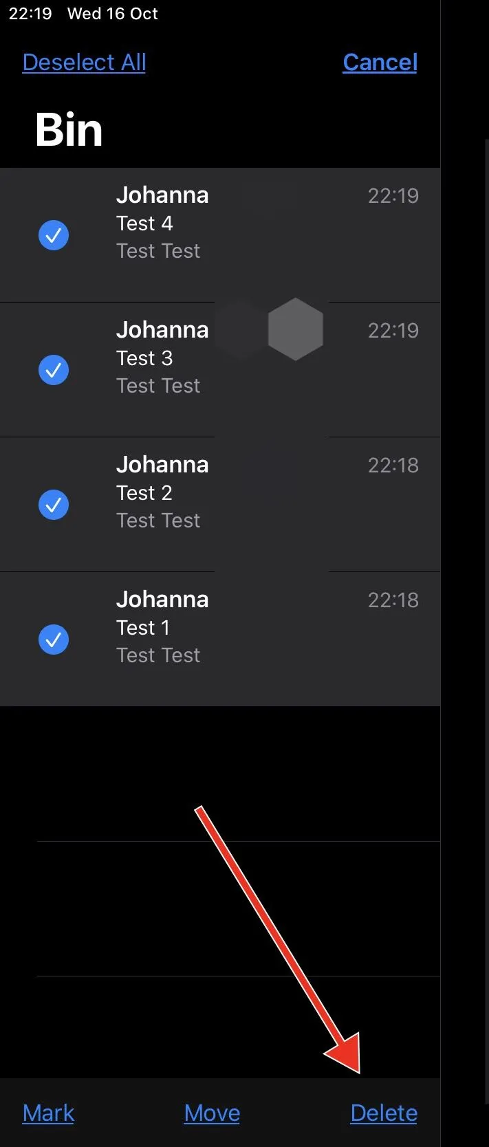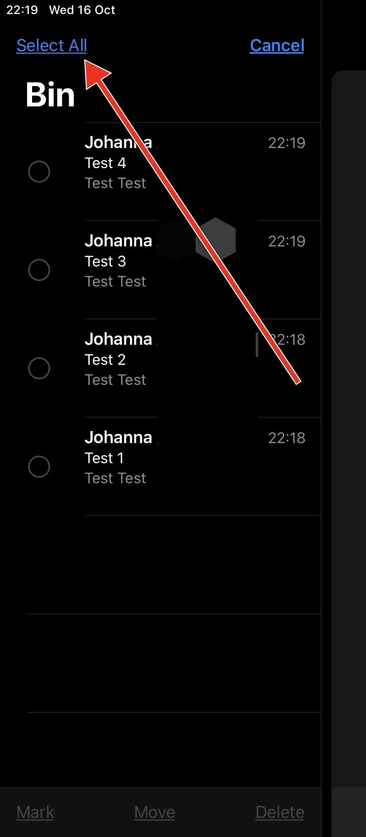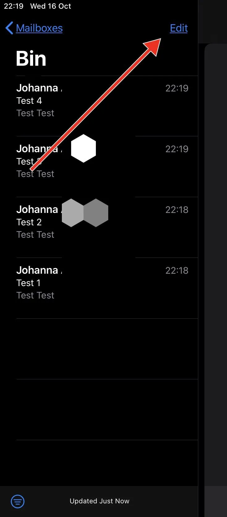 In the Trash/Bin folder, tap Edit at the top