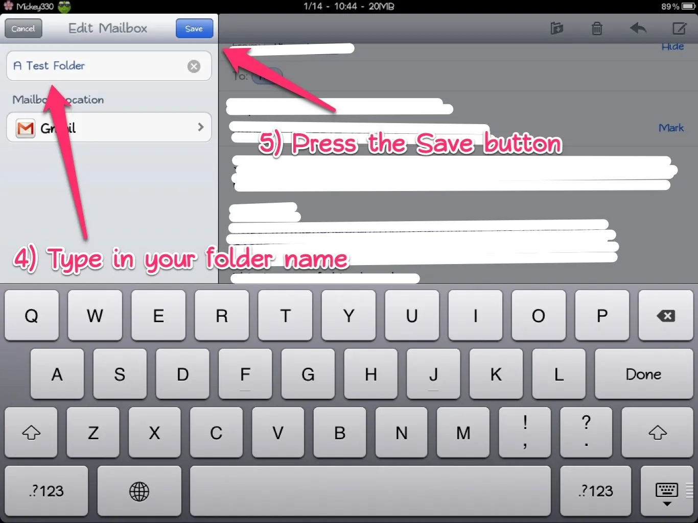 The created folder is there on your iPad and it shows up in Gmail on the Web.