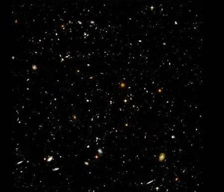 The Hubble Space Telescope pointed its camera to that small spot in a square. It kept pointing at it for about 4 months taking in all light that it could...