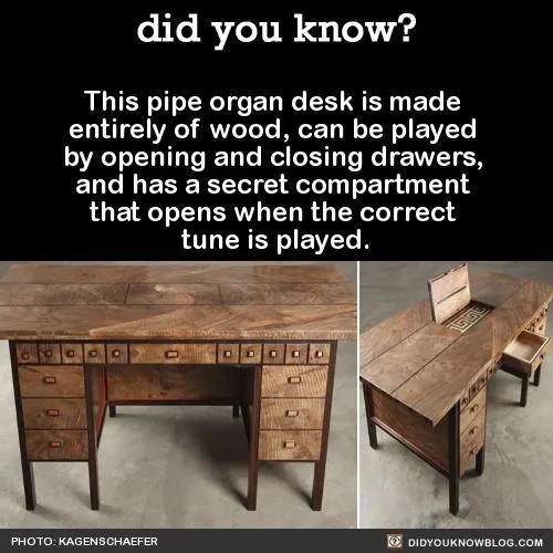 I found some additional information on the pipe organ desk. It Looks Like a Desk But It's Also an Organ and It's Full of Secrets