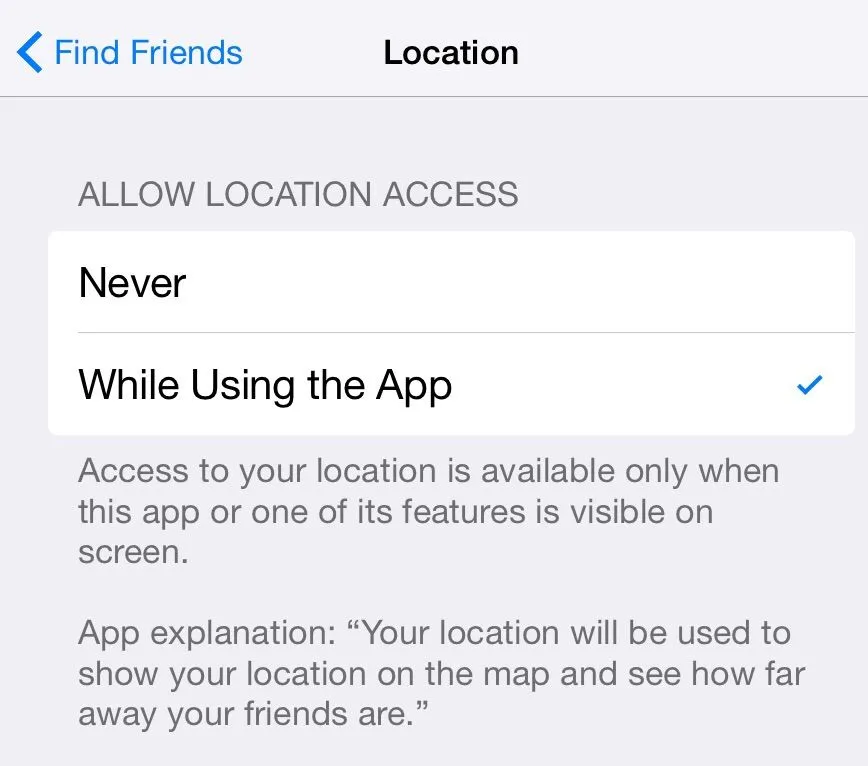 I see a number of apps besides Find Friends now only allow location services 'while using' . This is, I believe ,a new category and I am baffled as to the reason for it. It certainly reduces the usefulness of Find Friends.