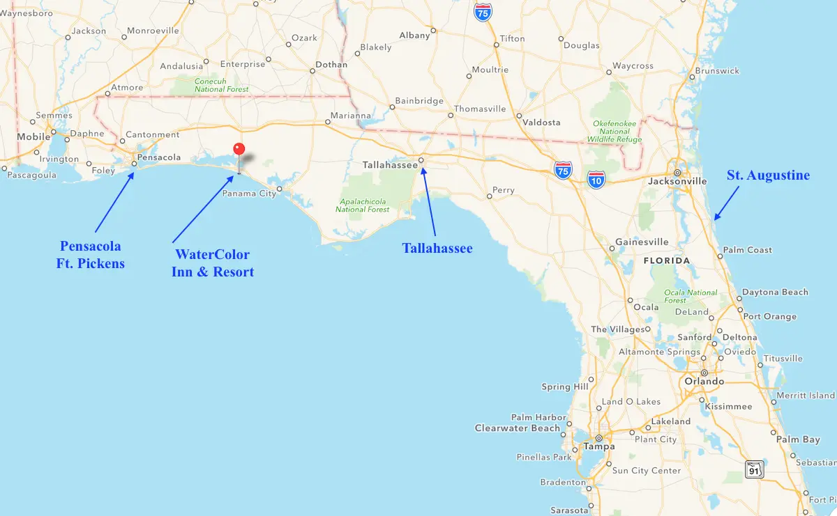 We just returned from a 6-night trip to the Panhandle - we flew into Tallahassee and rented a car, I then drove west (and into the Central Time Zone) to a resort w/i walking distance of Seaside, a popular retirement community. We stayed at the