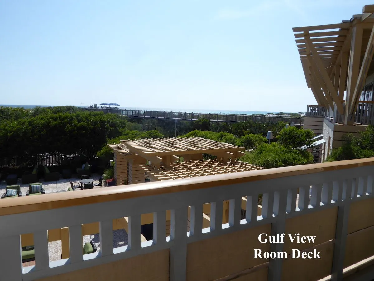 WaterColor Inn (see the map) - the Inn is part of a much larger resort property (best seen on the aerial view below) w/ many condos & houses that are privately owned and/or rented. Our room was excellent (one similar is also shown) w/ a deck view of the Gulf of Mexico - pics below show various parts of the Inn and the dining room. Dave
