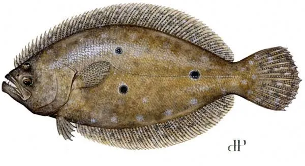 Hi Dave,we were talking things Flounder there a while back. Managed to get a very nice specimen, at that city market this morning that was just begging to make friends with the fry pan. It'll make a nice Sunday night dinner. Agree with you! The whole fish is the best way to fry them.Hi Andrew - here on the Atlantic East Coast, flounder (of course many varieties & names) is a bottom feeder from the ocean; both eyes are on top and their color matches the sea floor (see pic below); along the mid-Atlantic coast, the term 'flounder' is used for this fish; up in the New Jersey area (where Susan grew up), 'fluke' is basically the same fish; her father always had boats and we would go fishing for fluke - you had to anchor & drop your line to the bottom. SO, not sure if the fish you are talking about above is the same? Not having been to Aussie land, I've not (unfortunately) been able to eat the fish from there (one exception is that I've had Australian barramundi several times). Susan's flounder was 'flash fried' and was fillets - now they offered to prepared it several ways and if I'd not had flounder the previous night, then I would have chosen the 'whole fish' (sans head) pan seared - I love whole fish and would have easily accepted leaving the head on! DaveView attachment 54813