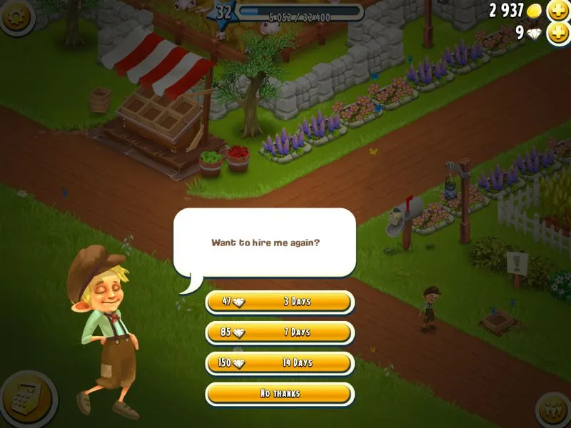 crucialkev said:I've just got errand boy today after a Hay Day update.......and boy does he turn up with some fantastic cheap cheap bargains! It appears I have him for 2 days so not sure what happens after that. Once he runs an errand for you, he needs two hours to rest before running another errand for you.