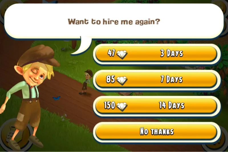foreverluv said:I'm thinking the option to hire him for 1 day is for the lower level. If I remember correctly, I was able to hire him for 1 day after the first trial period... now, 3 days and up r my only option.