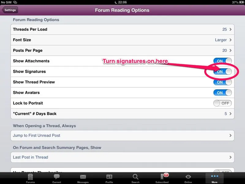 To view signatures you need to turn it on in Settings on the iPF app.