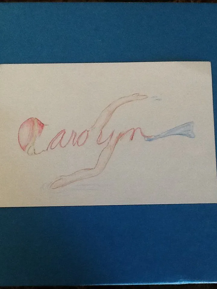 I cannot make my name look like something I enjoy doing, and am not terribly creative, but here's my attempt (oh so cornily!) to show whats most important to me: John, me and Olive - "mi familia"; faith, love and finding happy wherever it can be found. And chocolate. But I couldn't draw chocolate.