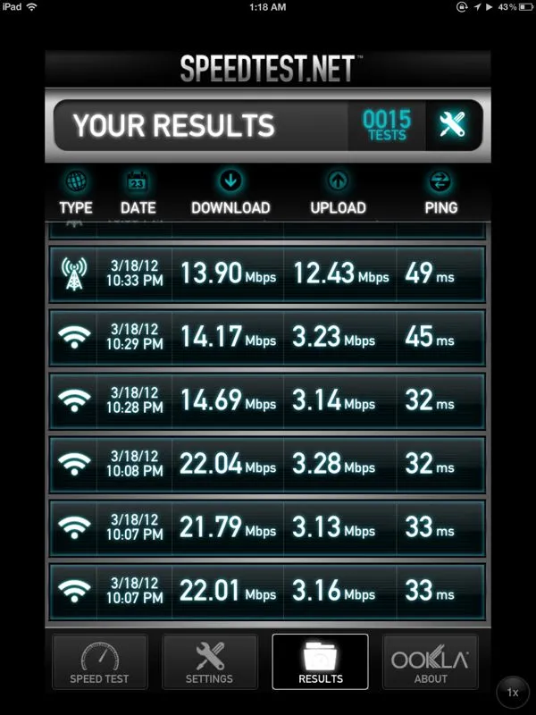 Are my number consistent with other iPads? I have a strong four bar signal? How's your speed?