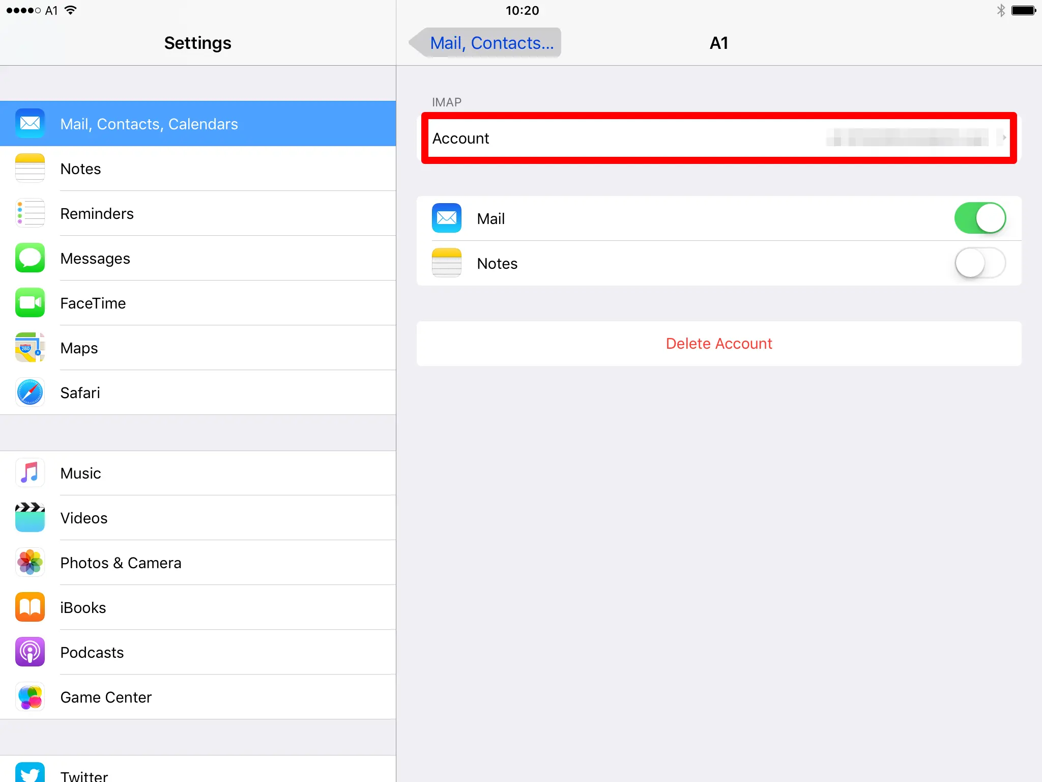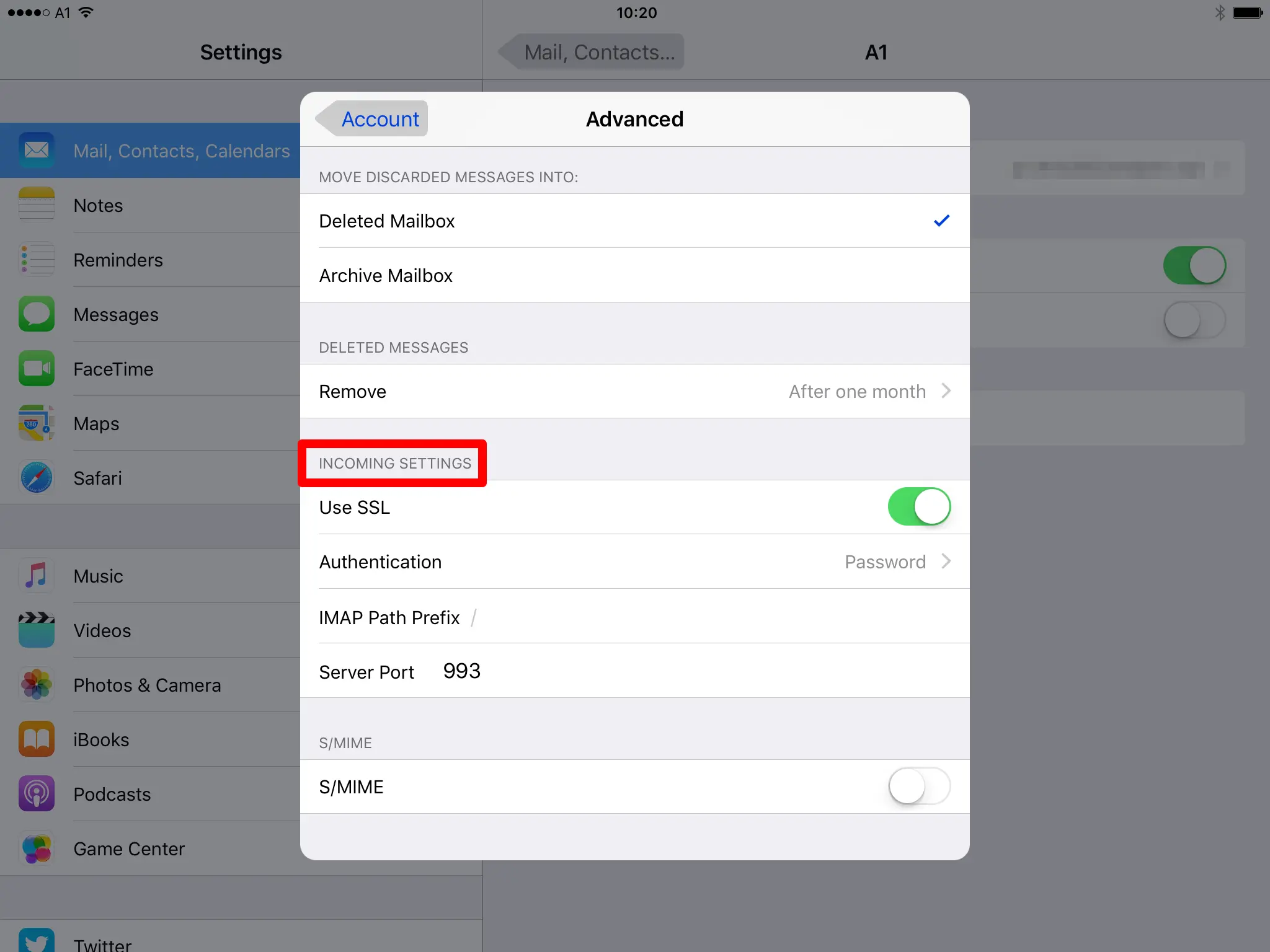 To change IMAP settings, select "Advanced" to change SMTP settings, choose "SMTP".