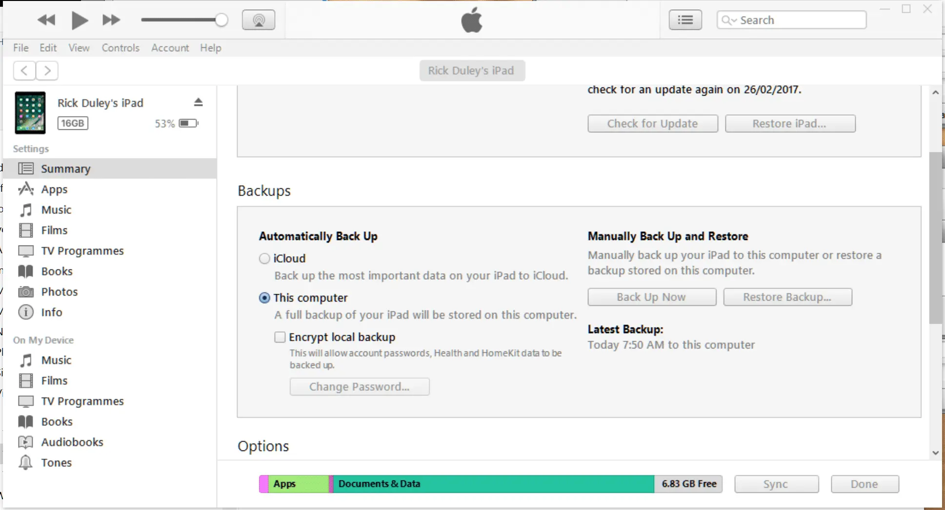 If I check my iPad with Windows Explorer I find that I have 466 MB left of 14.7 GB Internal Storage.