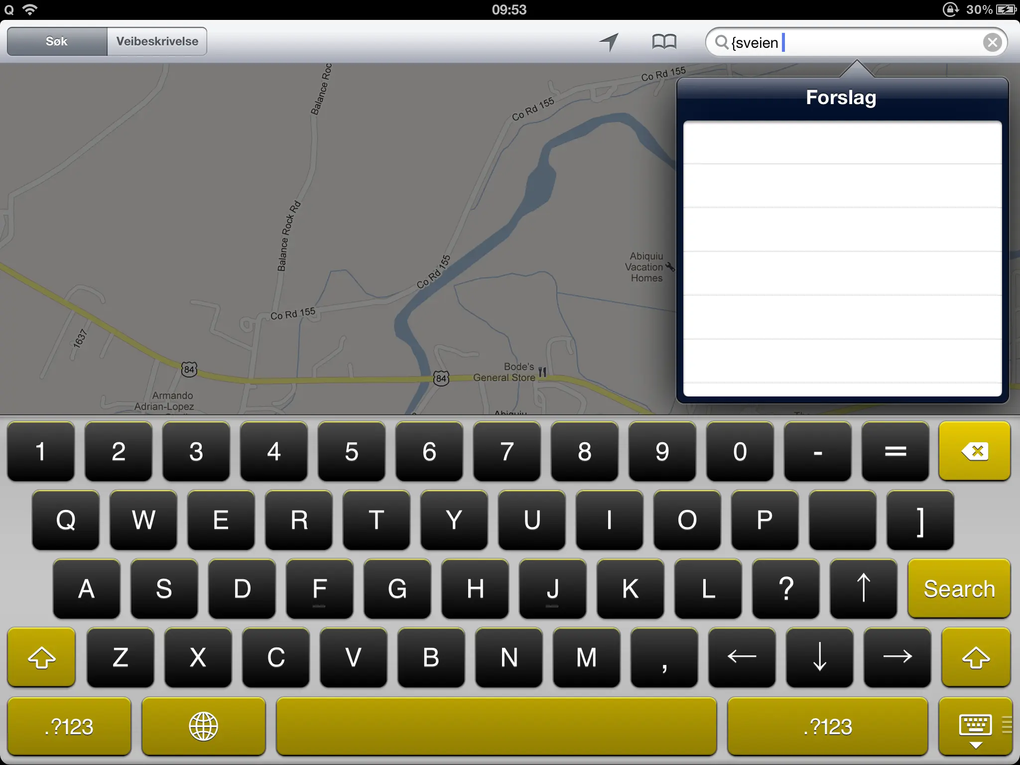 As you can see - no Norwegian characters. I am missing the Å (to rigtht of P, blank at moment), the Ø and Æ (both to the right of L, just now ? and arrow up).
