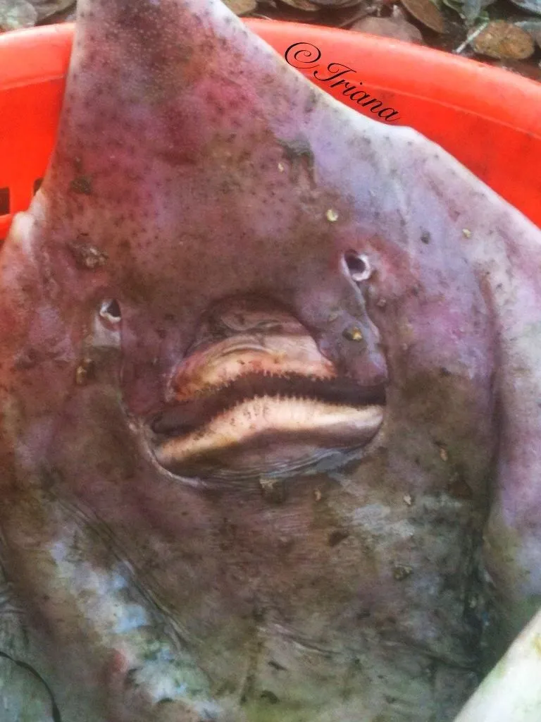 On research trip this Skate was found. It's a large bottom fish. I'm awed by it's face. This was near Ushagat island, Alaska.