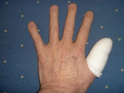Well ALL, for a change of pace, here's a pic of my left hand w/ a thumb bandage that I DON'T LIKE! Ouch - :thumbsdown: