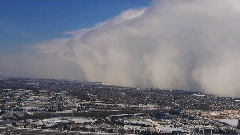 It looks like a wall bearing down on you. I hope no one was killed in the accidents.This image was taken from a news helicopter on assignment for our network affiliate station in Toronto, Ontario Canada. <img src="http://www.ipadforums.net/attachment.php?attachmentid=53603"/> You're looking at a snow squall line north of Toronto. A major highway that runs north / south within the storm zone was closed by police after almost 100 accidents occurred. AA Sent from my iPhone using iPF