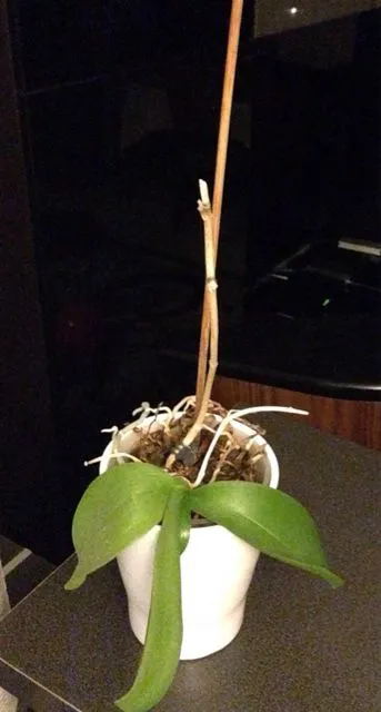I've been told some time ago, that I have to cut the stem as soon as it's brown. Just the stem, not the roots. The orchid will start blooming again. It seems to work. (See picture.)The whole stem?? I need to cut ??