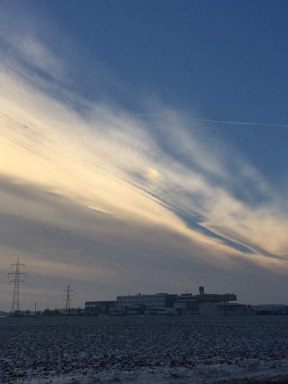 I just noticed the multi-coloured effect in the middle of the picture, I've never seen anything like that before.While driving to Neusiedl last year, I noticed this, so I stopped to take a picture with my iPhone: