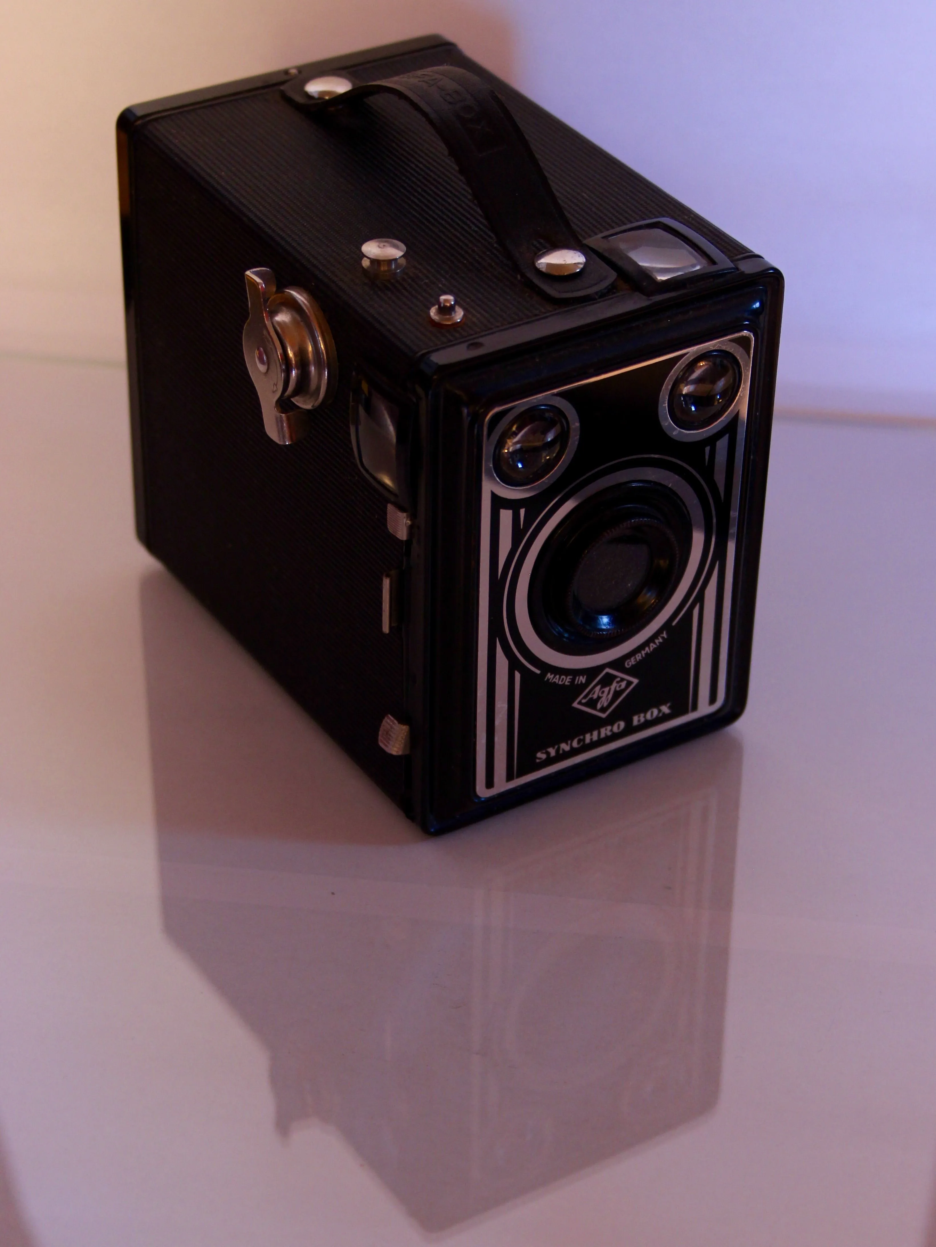 My mother owned a Kodak box camera similar to the one in your first photo. I first used it when I was about 10 years old. Unfortunately, film is no longer available in the size needed so it sits on the shelf in my closet.Both of these cameras belonged to my father. He used this one when I was a baby.