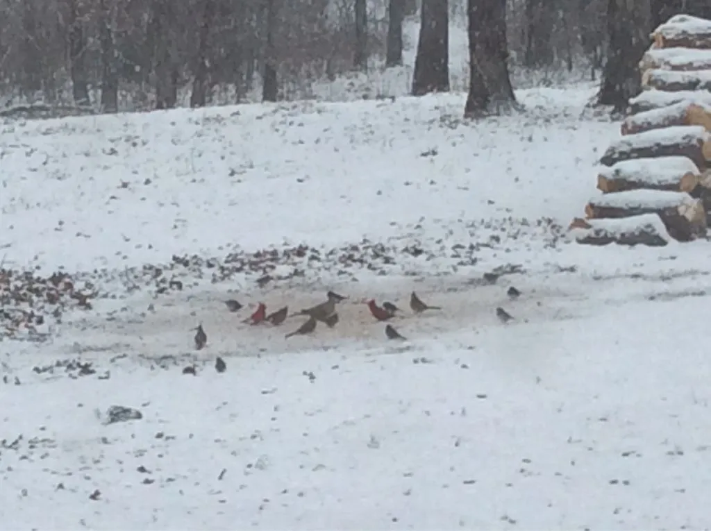 Nice pictures. Is that a pair of cardinals I see feeding with the other birds?