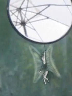 If things look a little out of proportion, it's because I tried to work with the shading on the wall instead of drawing the wings the way I think they should be, not that that would necessarily have made it better.