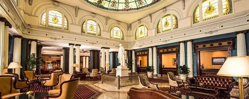 But our last stop (on the way home to North Carolina) is at The Jefferson Hotel in Richmond, VA, capital of the Confederacy - this is a wonderful 5-diamond property - probably our 6th visit over the years (just a 4-hour drive from home) - below, a couple of pics from the web - first is just a portion of the beautiful lobby w/ a statue of Thomas Jefferson (author of the Declaration of Independence & third president of the USA) - the magnificent glass dome is only seen partially; the second pic descending into a large space where events are often held - an important one is the Sunday 'Champagne Brunch' which we'll be enjoying tomorrow - I usually stick w/ the seafood, e.g. oysters on the half shell, salmon (smoked & poach), mussels, various types of cooked fish, etc. - of course, many other choices, including omelettes & other delicious breakfast items; carving stations; and numerous desserts - if you are EVER in this area, this BRUNCH is a MUST (and I don't like brunches -) - Dave