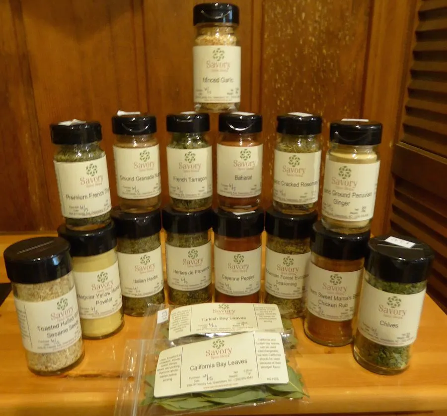Savory Spice Shop - took a shopping list to 'replace' a bunch of our herbs & spices (and add a few new ones) - came home w/ about 18 items, shown below - labels hard to read, so the ones we bought are quoted below - we can't wait to start using them! Dave