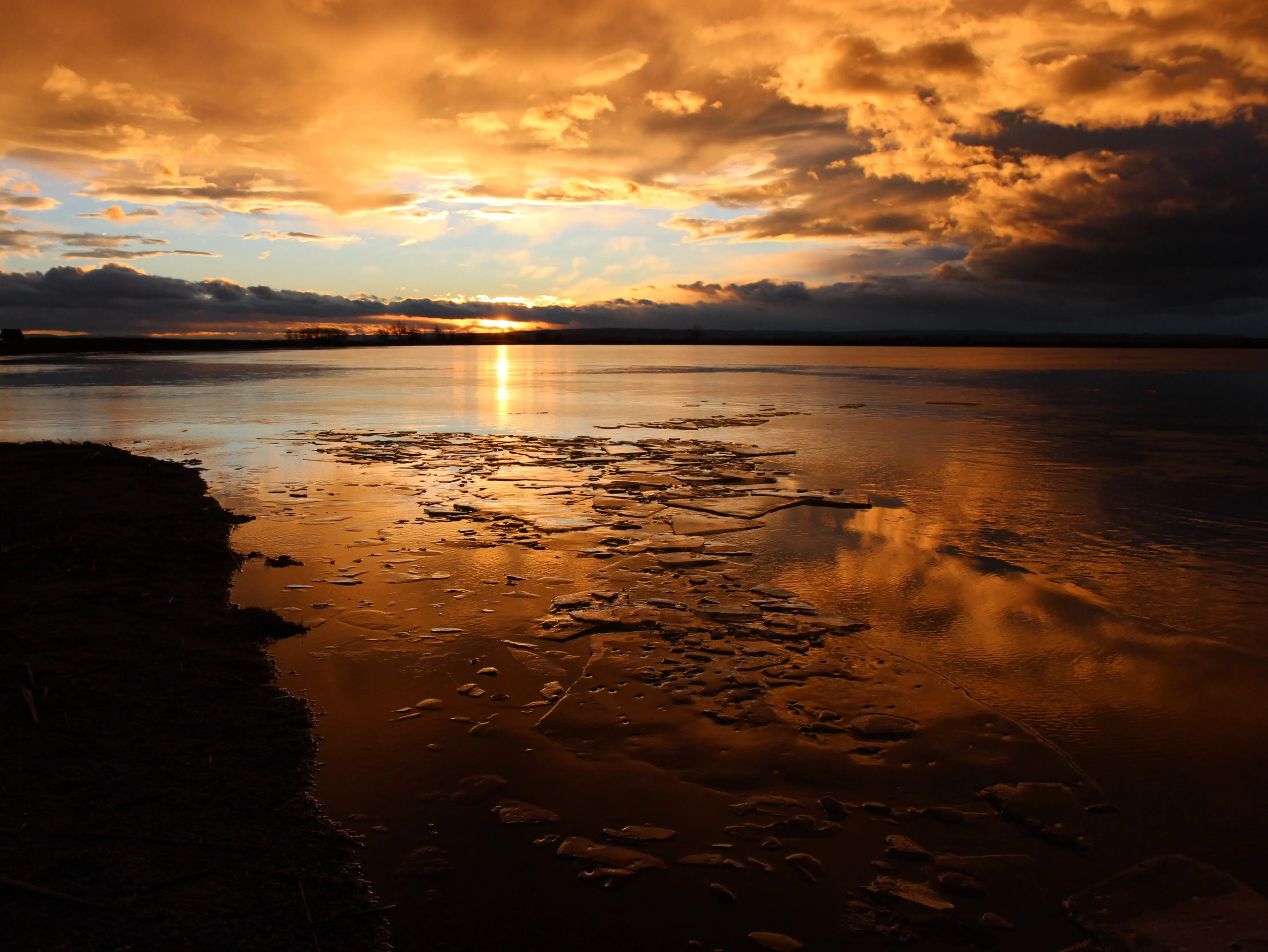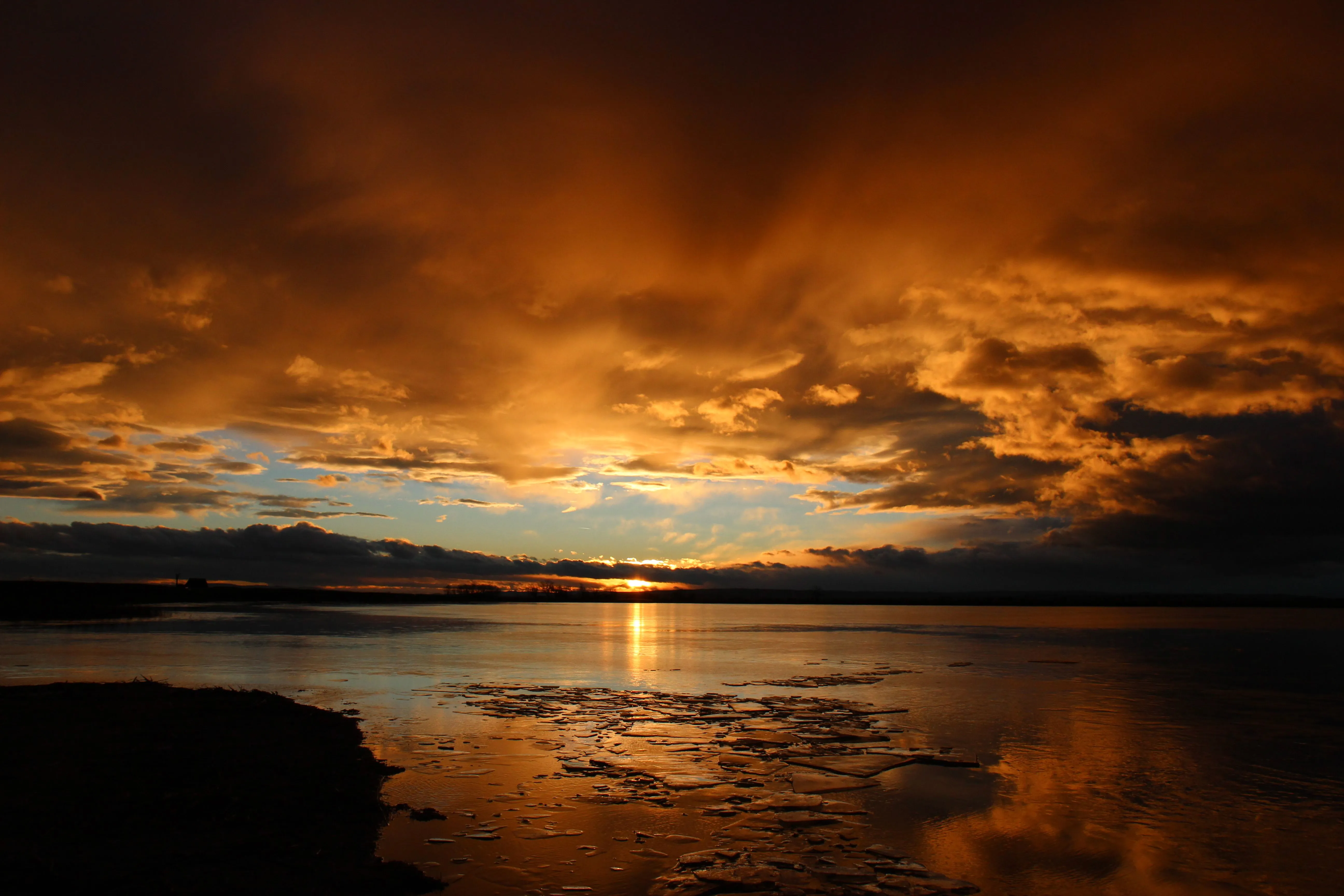 The sunset in the second photo is spectacular! You don't see one like that very often, with the lake in just the fight position.These are from today, taken with my DSLR