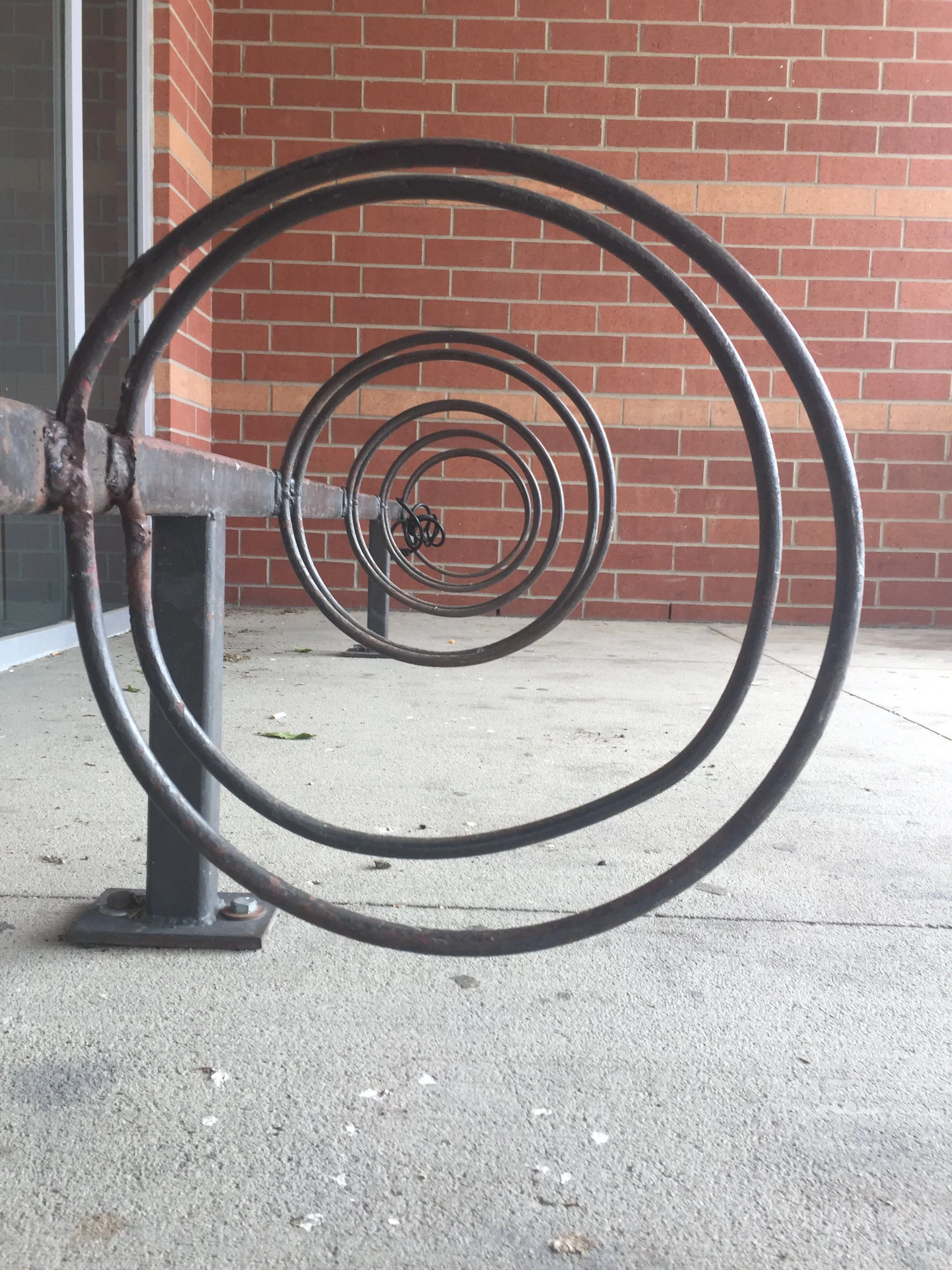 Here's some other "bicycle" stands.Nice angle. Around here some places have gotten fancy with the bicycle stands. This one is in frunt of city hall.