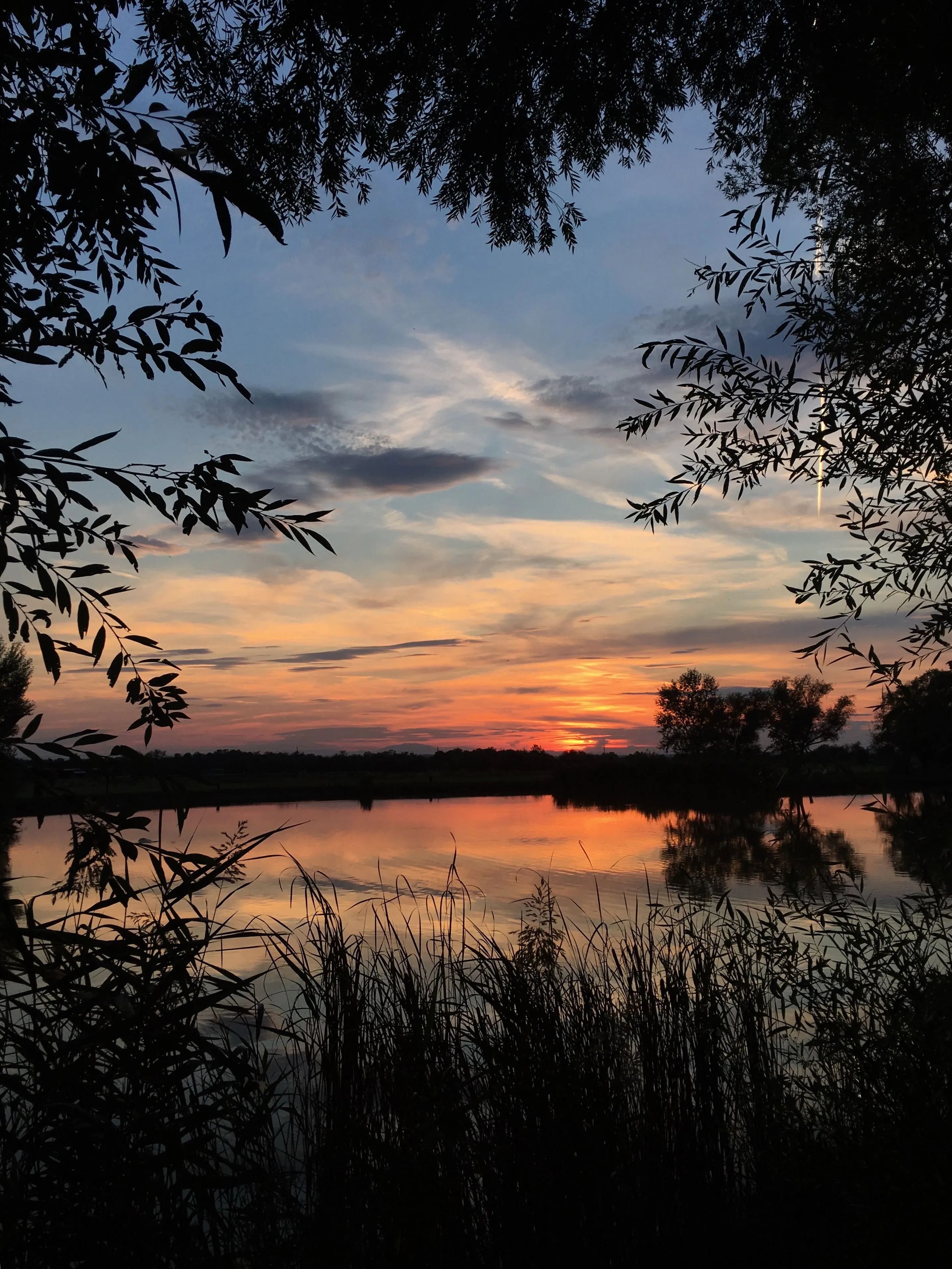 I was lucky today. When the sun set, I was near a pond. Here's the result: