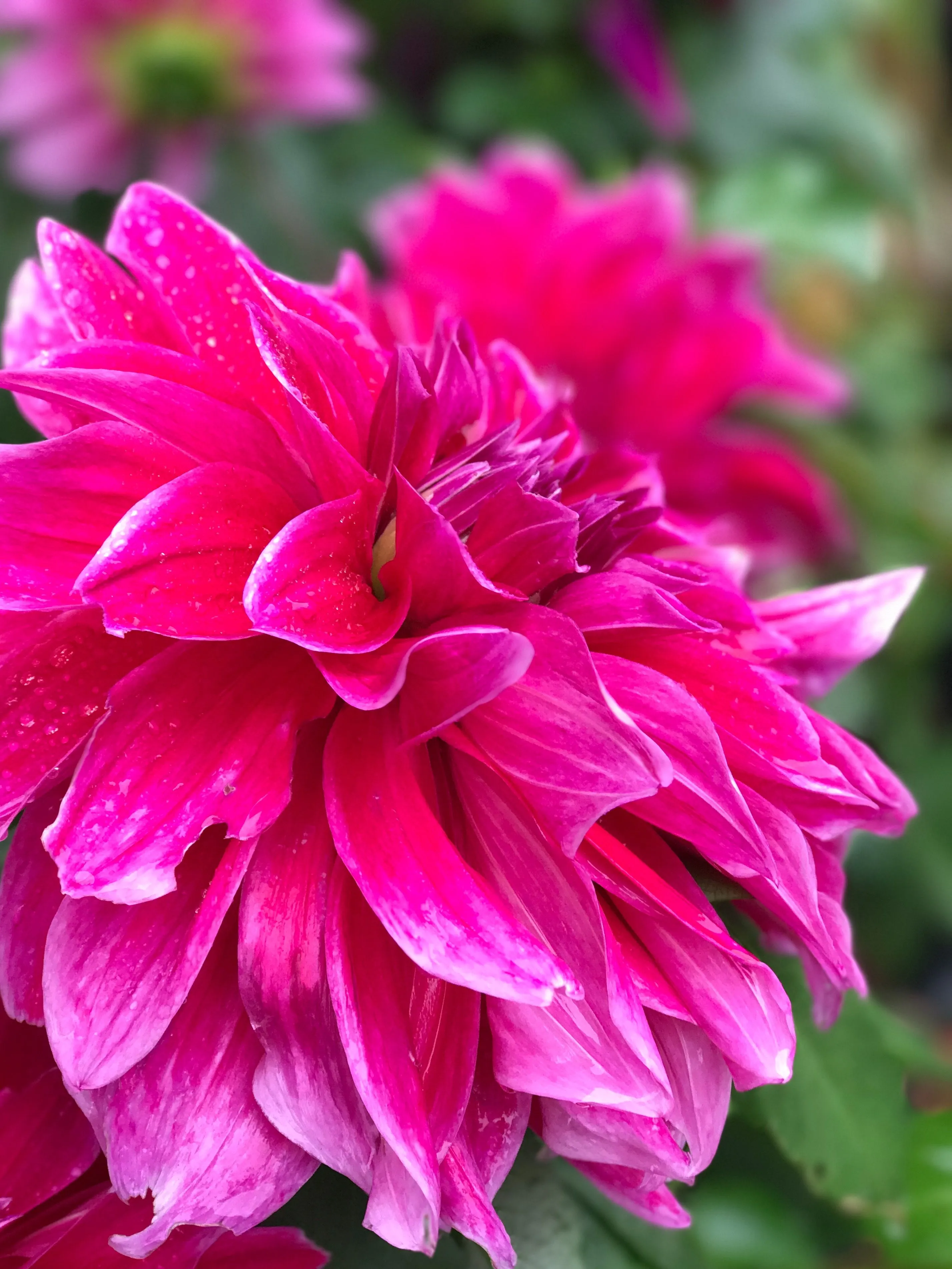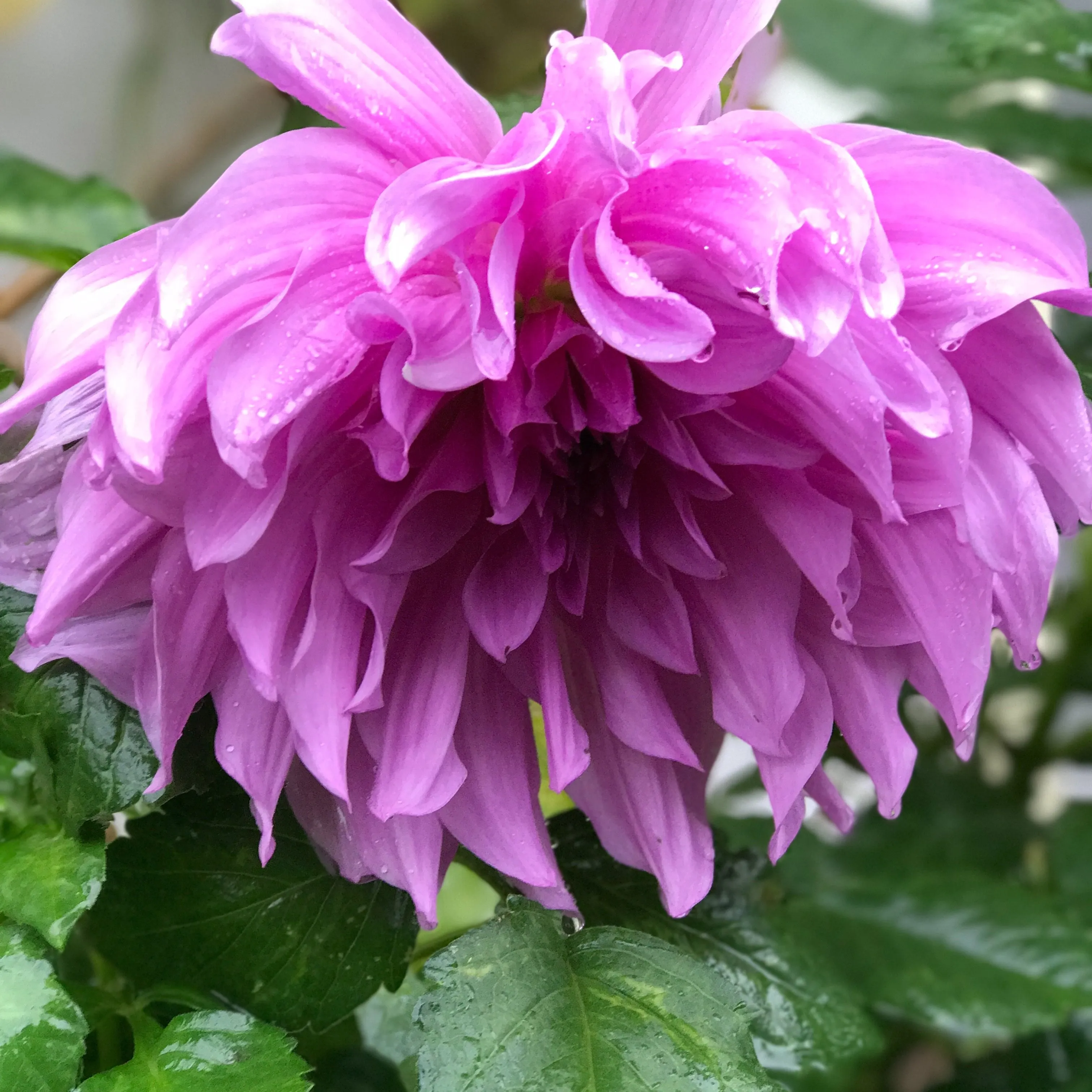 Walking along, getting wet, when I suddenly realized that my new water-resistant wider aperture iPhone is a great rainy weather camera. So, some of my neighbor's not-quite-dead flowers.