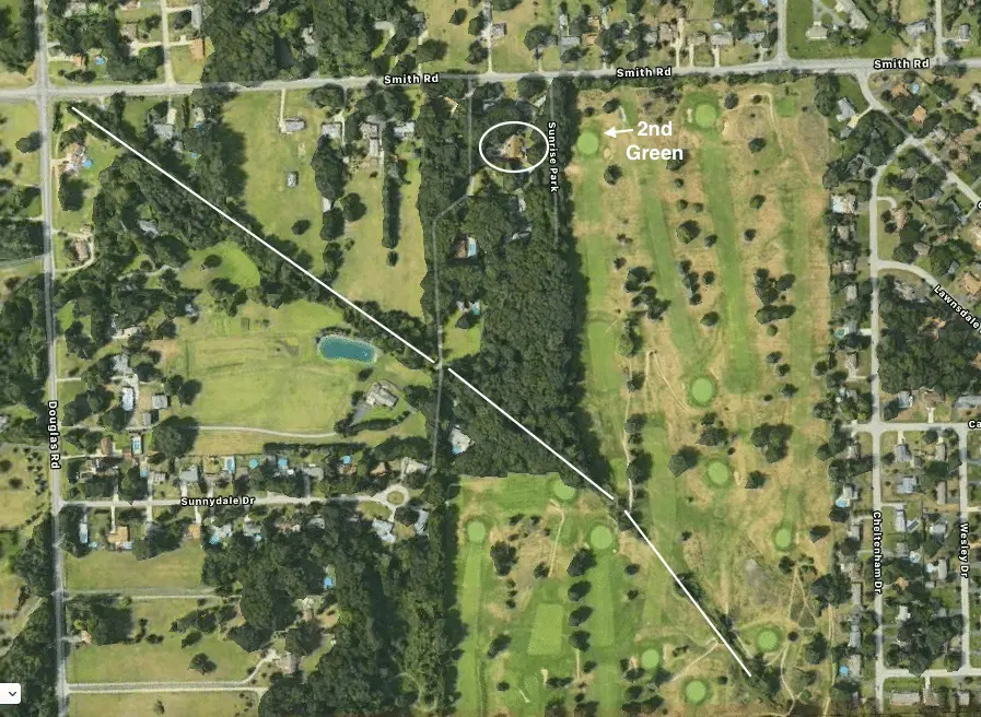 BUT, on that map I've placed some straight lines where then a wide creek ran from the golf course (lower right) into the woods and continued for several miles - in the winter after school, I was down there for at least an hour's worth of ice skating almost daily. Dave