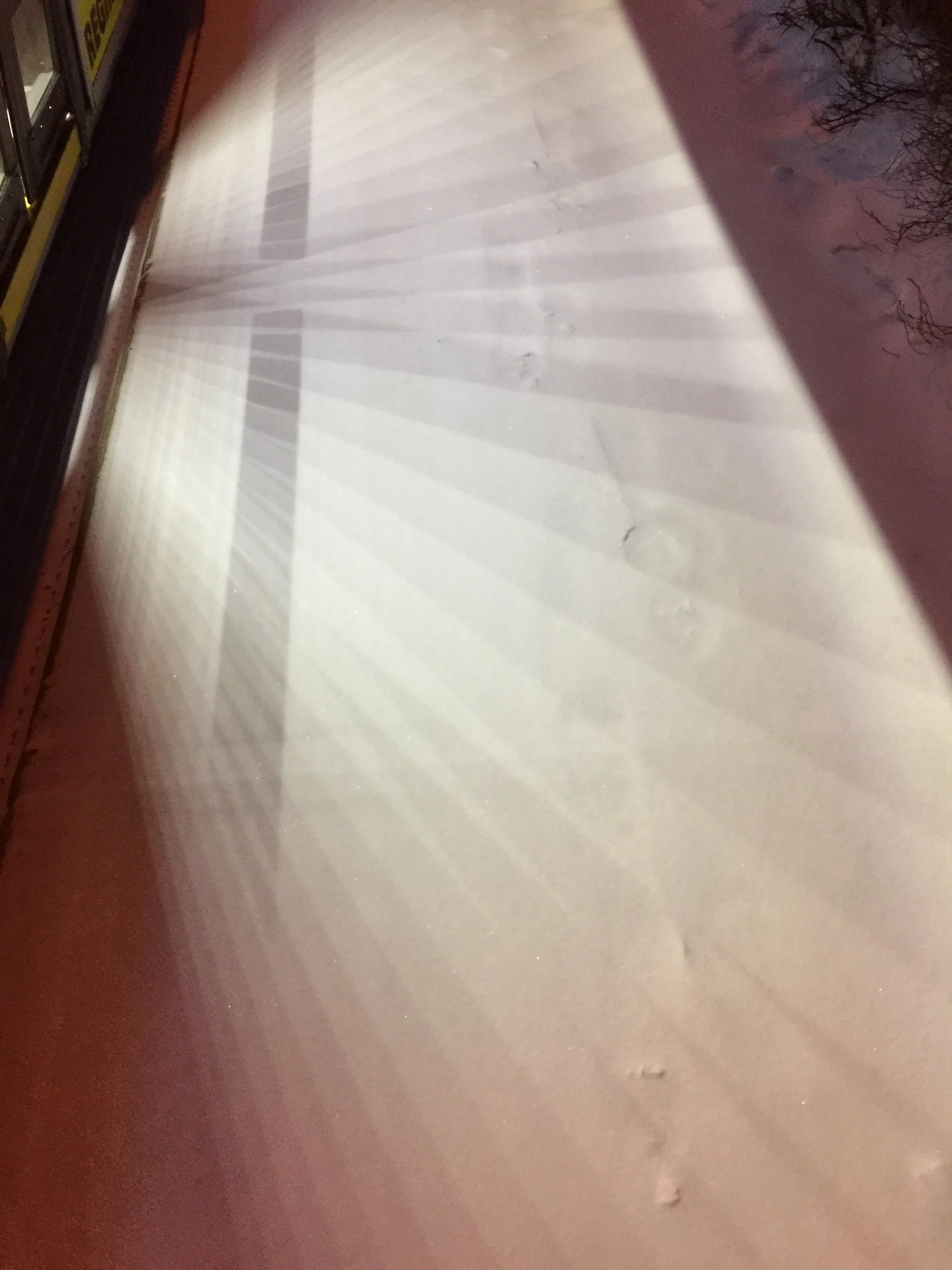I wouldn't have thought of a bus as source of the lights. Great!Light shining from the rear door of the bus I rode on my way home from work. Here's another view.