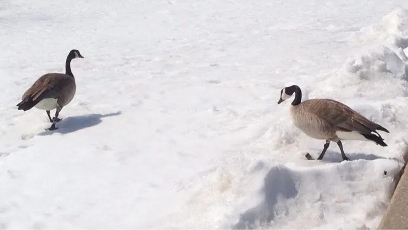 Here's a pair of Canada Geese at a patch of open water on Wascana Lake.